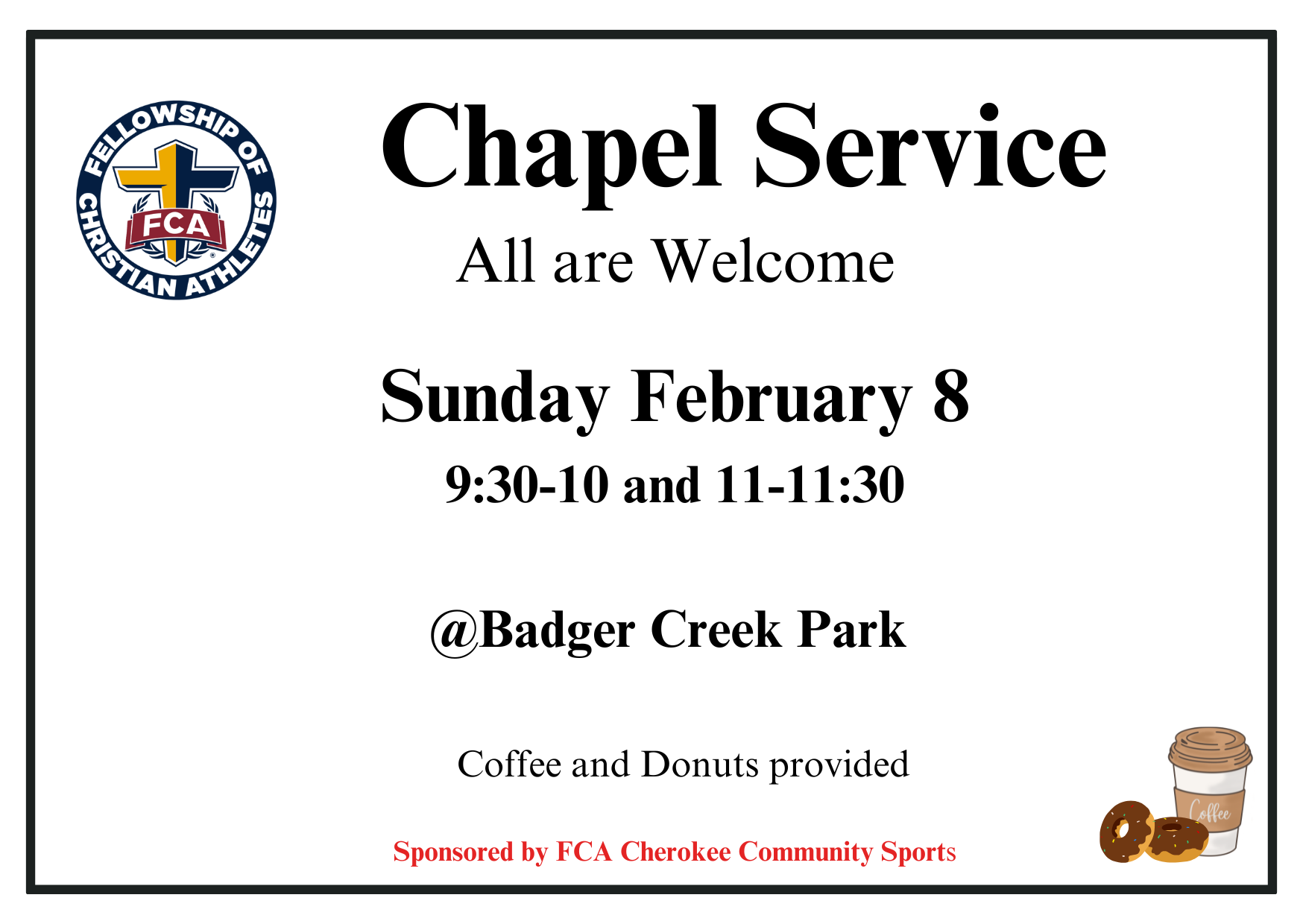 Vision is to see Cherokee County transformed by Jesus Christ through the influence of coaches and athletes.
